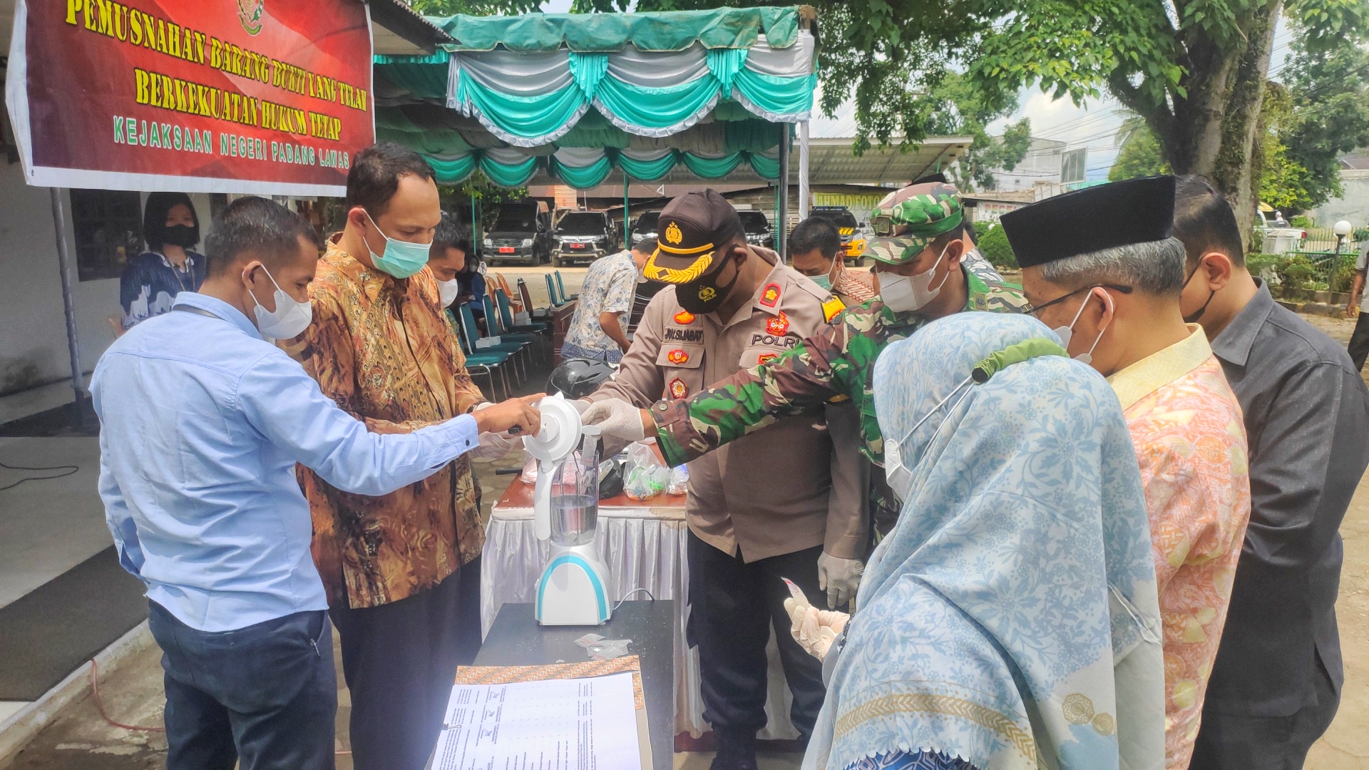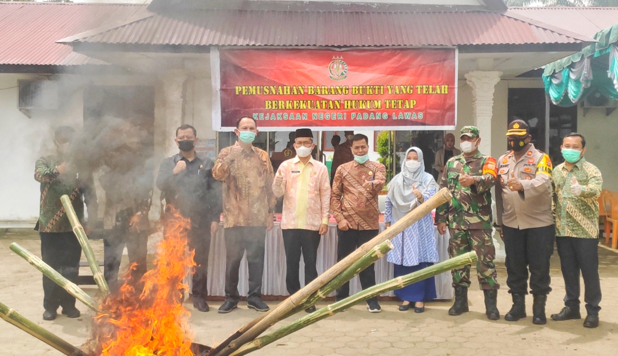 Dalam pelaksanaan kegiatan pemusnahan barang bukti tersebut Kepala Kejaksaan Negeri Padang Lawas secara simbolis membakar dengan menggunakan api obor ke dalam tumpukan barang bukti dan diikuti oleh Sekretaris Daerah Kabupaten Padang Lawas, Wakil Ketua DPRD Kabupaten Padang Lawas, Wakapolres Padang Lawas, Pabung Kodim Tapanuli Selatan yang diwakili, Ketua Pengadilan Negeri Sibuhuan, Kacab Rutan Sibuhuan yang diwakili, Wakil Kepala Kantor Kementerian Agama Kabupaten Padang Lawas, Kepala Dinas Kesehatan Kabupaten Padang Lawas, dan Kasatpol PP Padang Lawas. Kemudian pemusnahan barang bukti dilanjutkan dengan melarutkan barang bukti narkotika jenis sabu menggunakan blender dan air panas setelah itu dilanjutkan dengan menghancurkan barang bukti handphone dan barang bukti elektronik lainnya dengan menggunakan palu/martil hingga hancur dan tidak dapat digunakan lagi.
