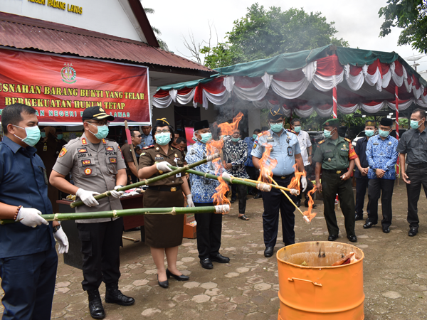 Kejaksaan Negeri Padang Lawas melakukan kegiatan pemusnahan barang bukti Tindak Pidana Umum yang telah berkekuatan hukum yang tetap, Selasa (17/03/2020) pada halaman kantor Kejaksaan Negeri Padang Lawas Jl. Kihajar Dewantara, Kelurahan Pasar Sibuhuan, Kabupaten Padang Lawas, Provinsi Sumatera Utara. Pemusnahan barang bukti dilakukan dengan cara dibakar, dilarutkan, dan dihancurkan sampai tidak dapat dipergunakan lagi terhadap…